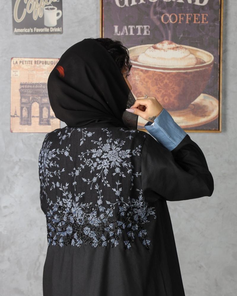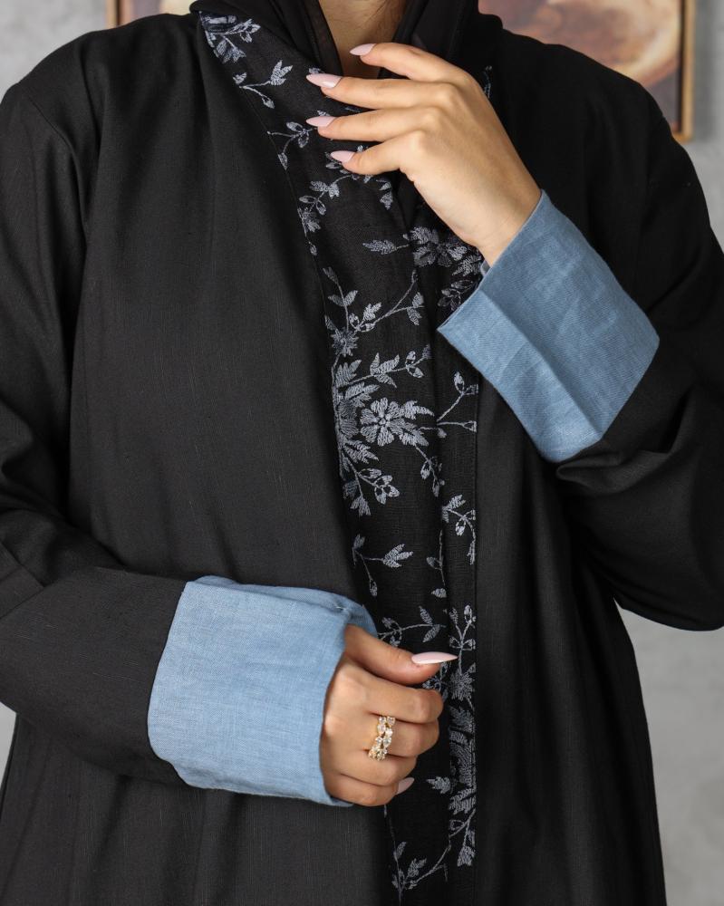 اناقة لا متناهية لإطلالة جذابة ، حيث ان العباية مصنوعة من قماش اللينن المطرز الاروبي و اللينن السادة